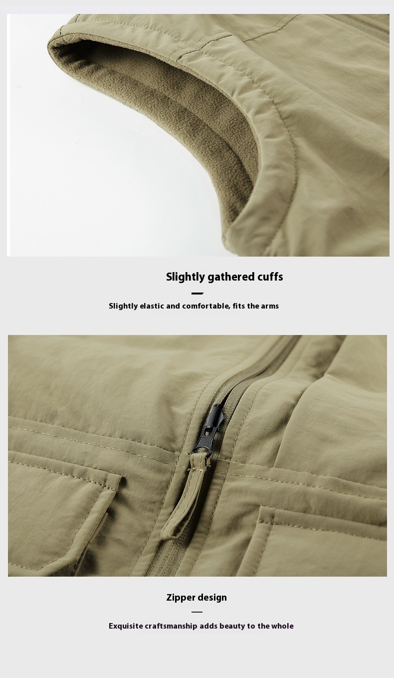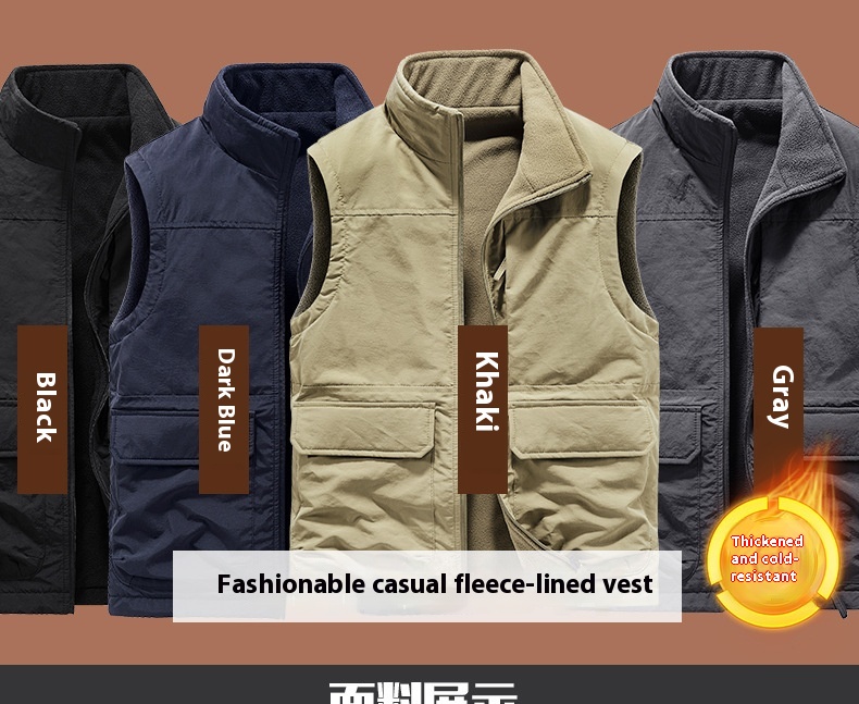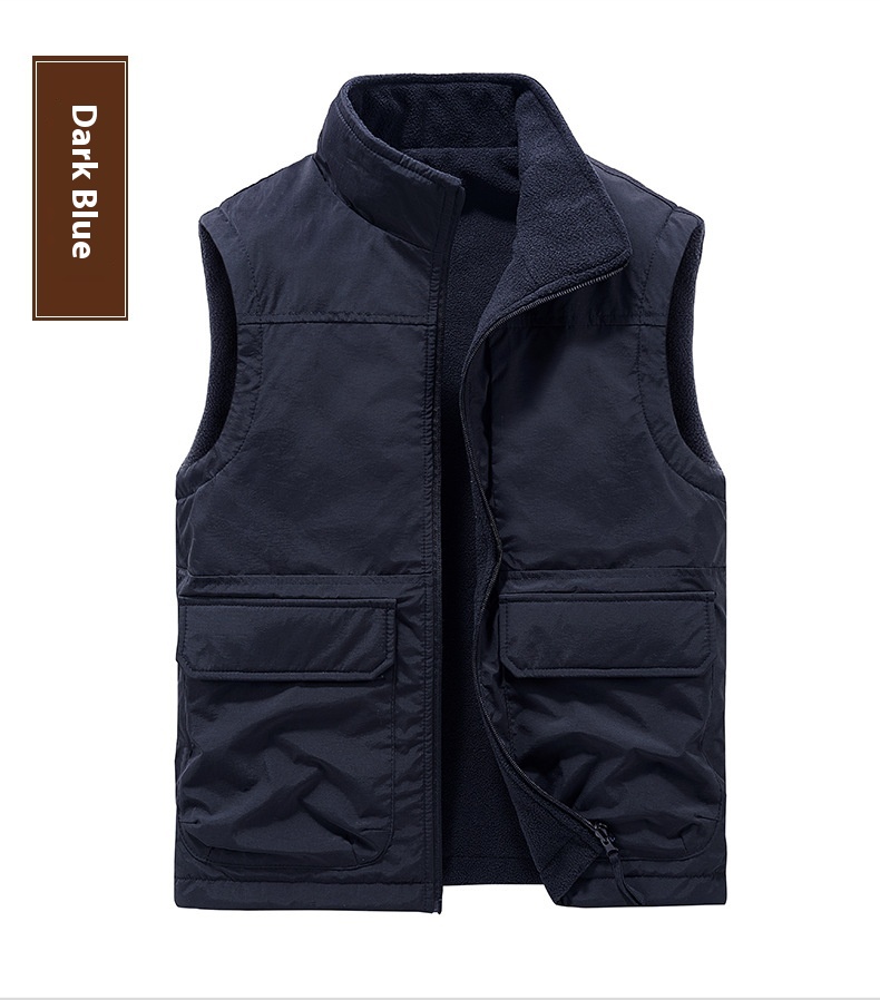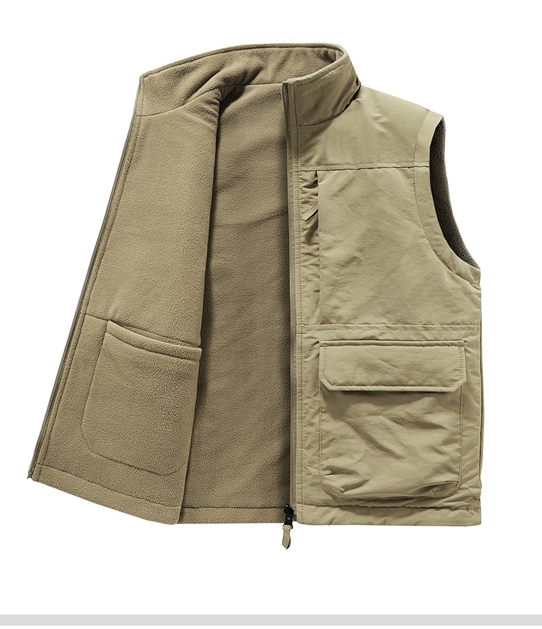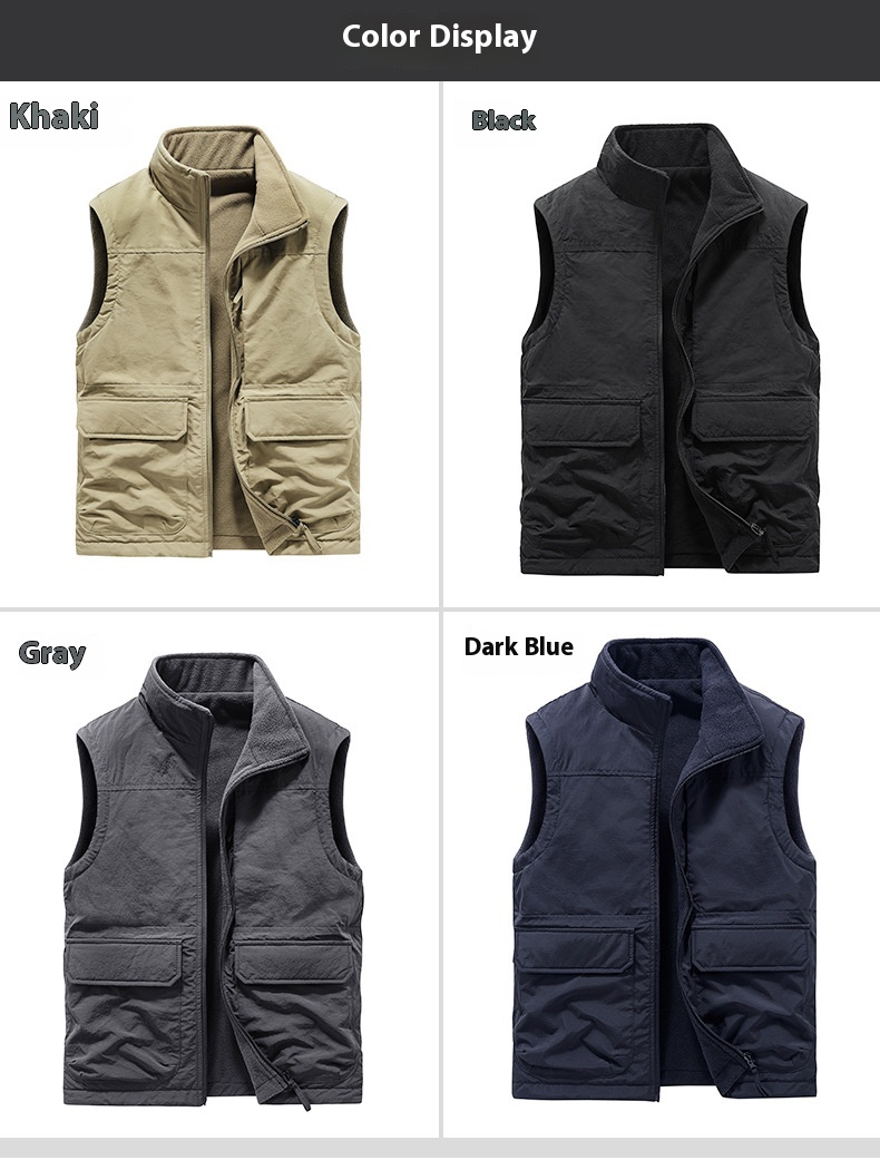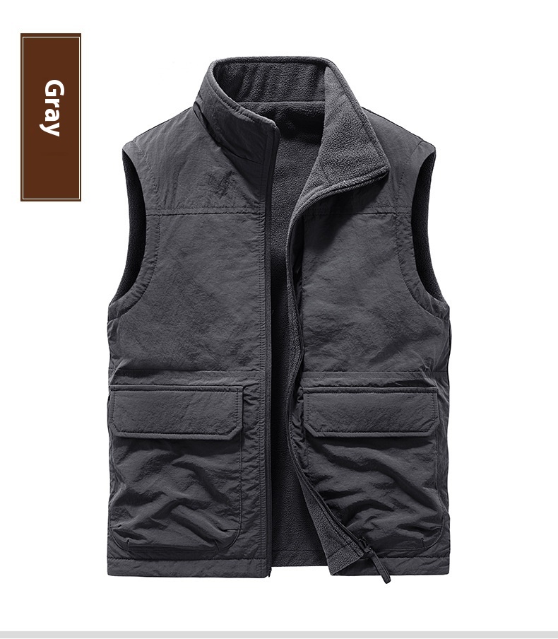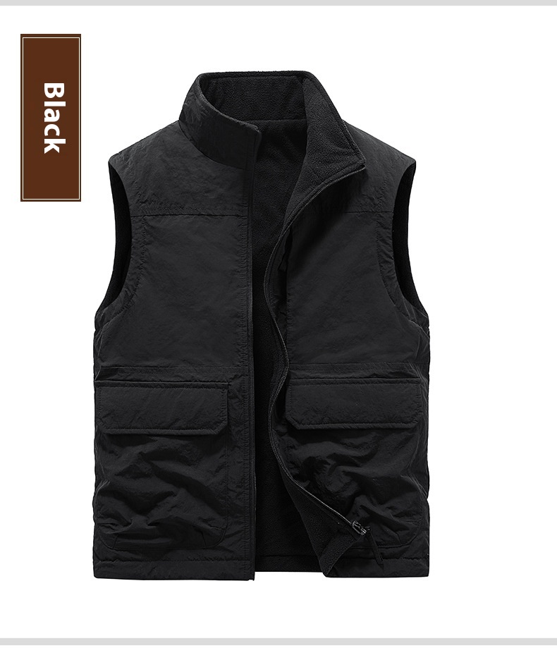 Men's Outdoor Double-sided Wear Velvet Vest Multi-pocket Leisure Cargo