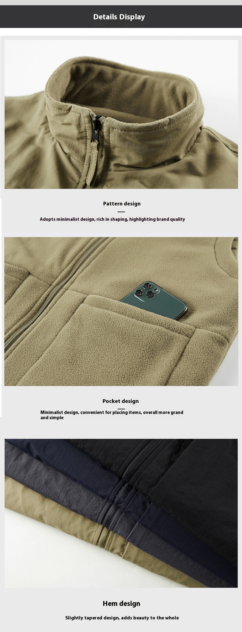 Color: khaki, black, dark blue, gray, army green, sand