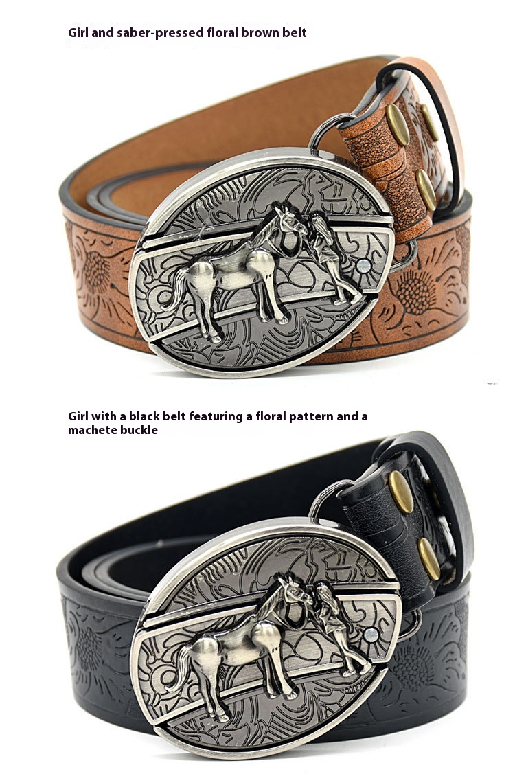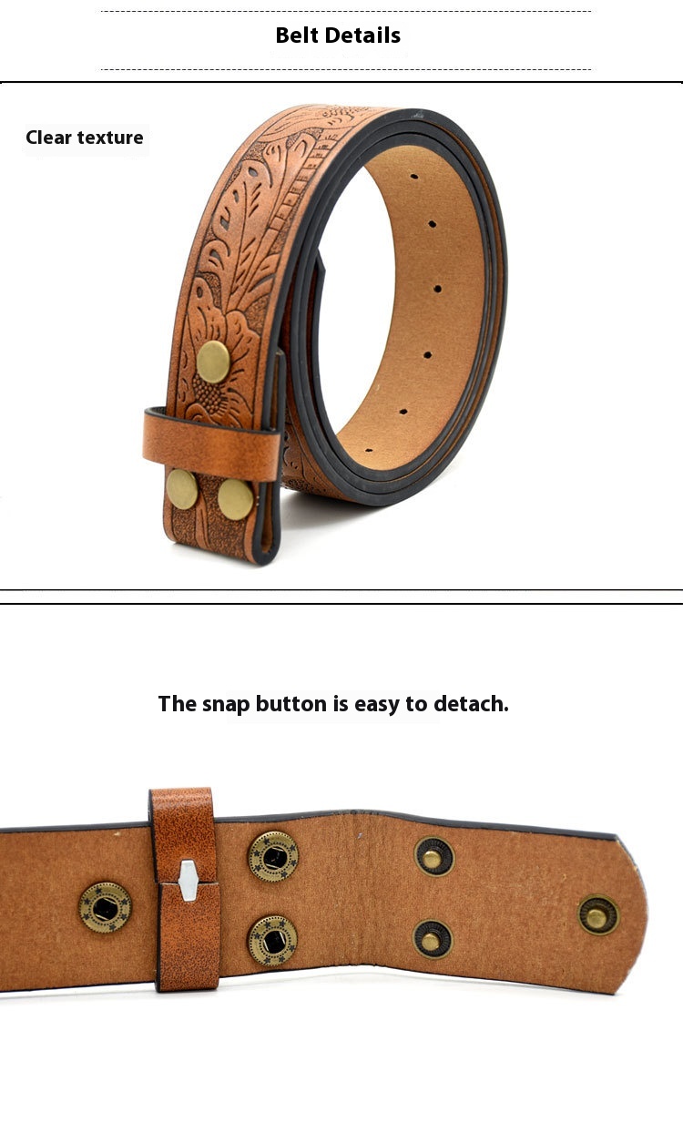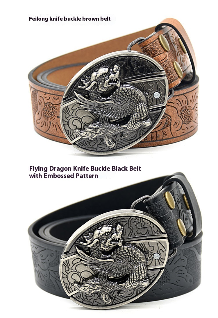 Personality Student Trendy Printing Engraving Smooth Buckle Knife Embossing Belt